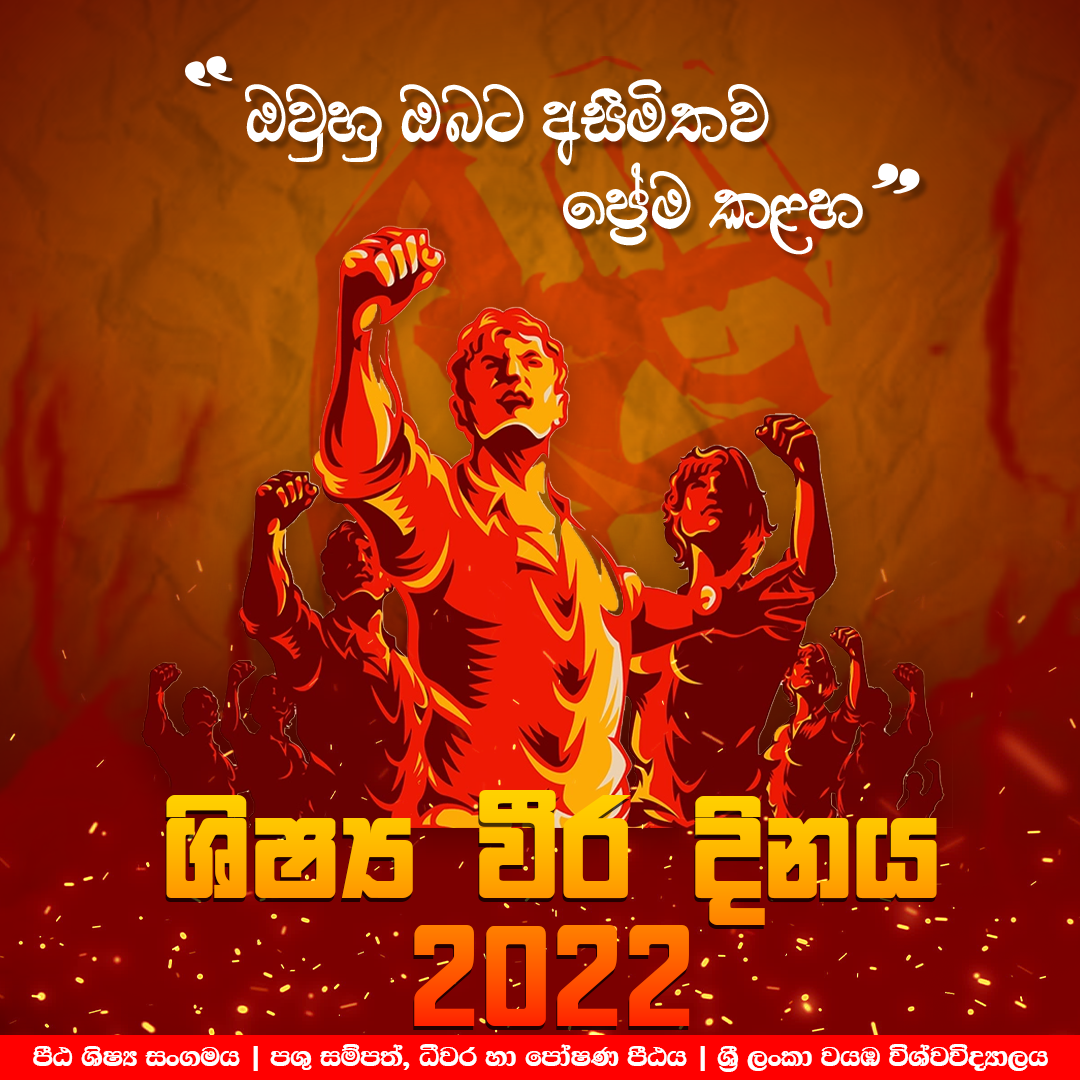 එදා ඔවුන්ගේ රුහිරු බිඳු තුළින් සාරවත් වූ මේ කර්කෂ පොළොවේ නොපිපි කුසුම් ගොනු පූදින්නට විය. නූපන් පරම්පරාවක සිහින වෙනුවෙන් දිවි නොතකා තම කුලුදුල් යෞවනය සින්න කළ ඔවුහු, සැබෑම සිසු විරුවන් ය. ඒ අසීමාන්තික ස්නේහය සිහිකරනු වස්, සදා අමරණීය සිසු විරුවනි , ඔබට පිදෙන්නා වූ උපහාරයයි මේ.. ඔබේම මාවත පියමැන යන්නට සුවහස් මල් තව සරසවි බිම…
